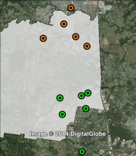 Booths in Morayfield have been split into two parts between the two main suburbs: Burpengary in the south and Morayfield in the north.