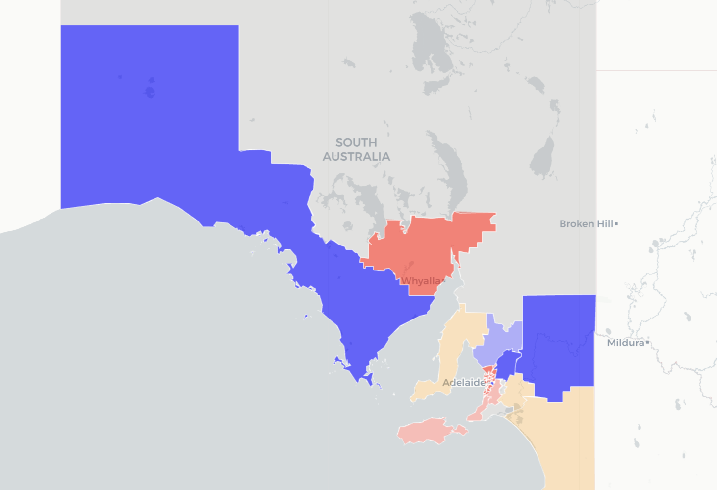 - One Nation – leading in Hammond, Narungga (need 2CP count), Ngadjuri and MacKillop (need 3CP count)