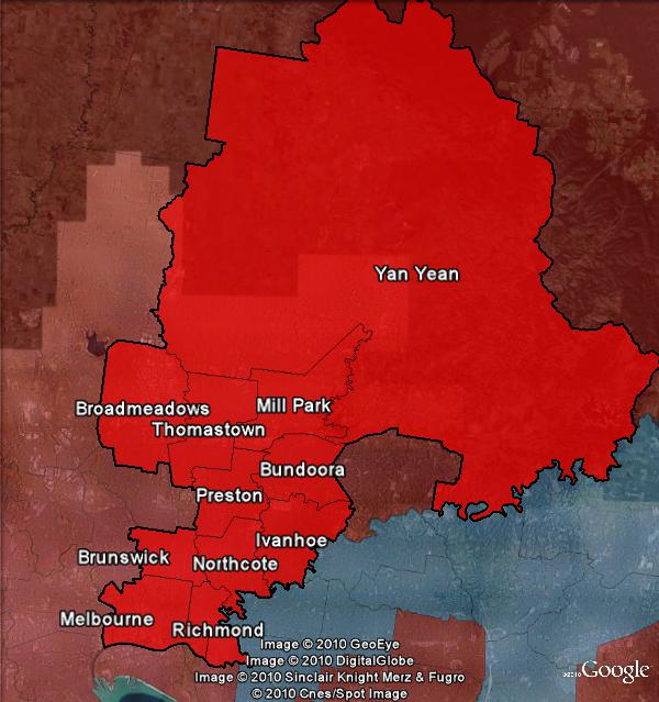 Northern Metropolitan region covers the electoral districts of Broadmeadows, Brunswick, Bundoora, Ivanhoe, Melbourne, Mill Park, Northcote, Preston, Richmond, Thomastown and Yan Yean.